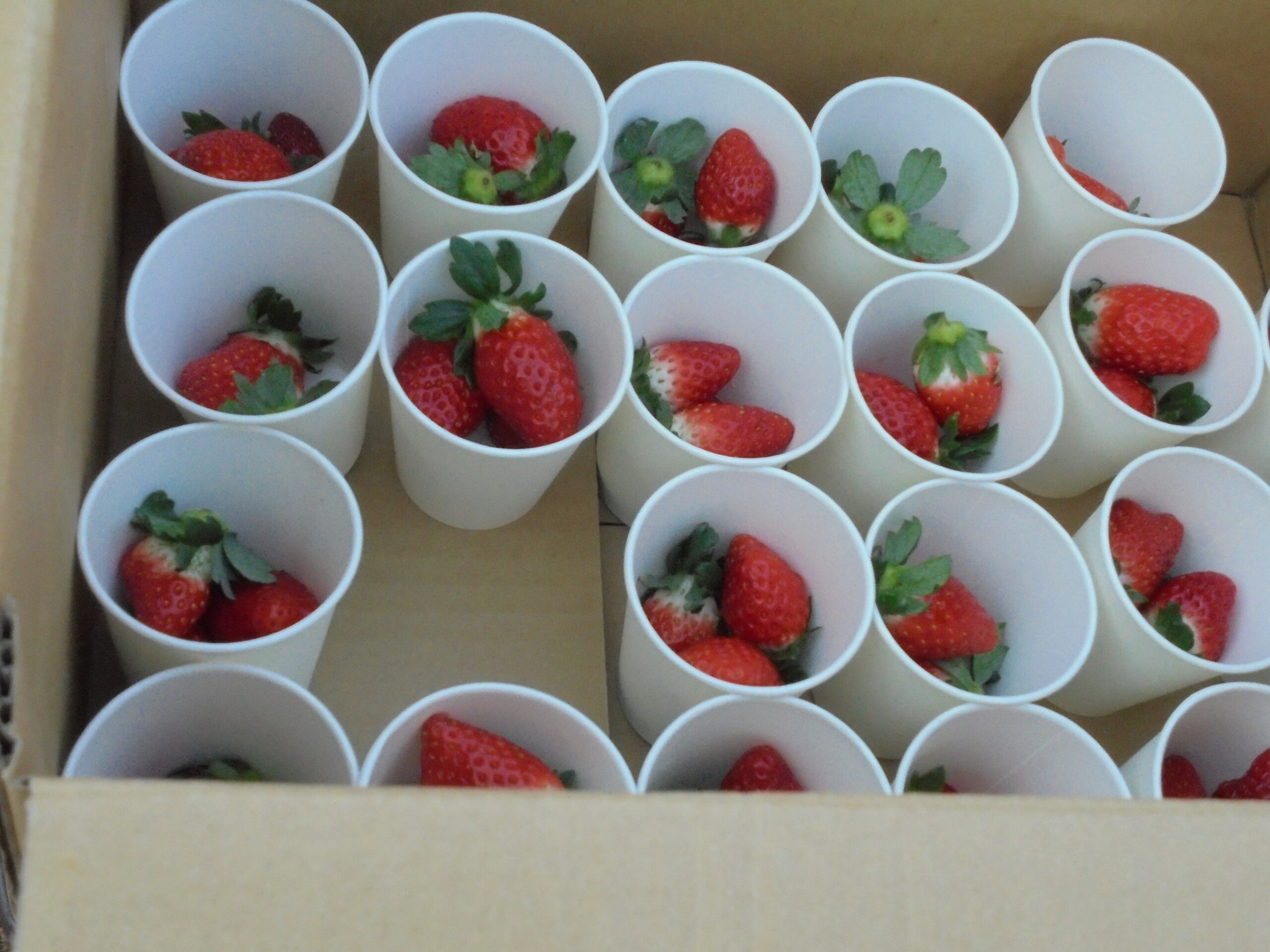 ゴミ拾いの後は、コーンスープやカフェオレ等の温かい飲み物と「シーズファームはなわ農園」で採れたイチゴが振舞われました。
